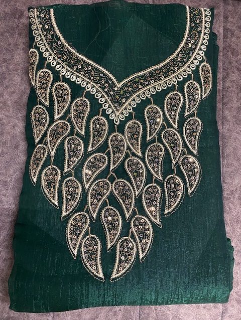 Product title and description: Crush Georgette fabric with matching dupatta and matching santoon fabric bottom.