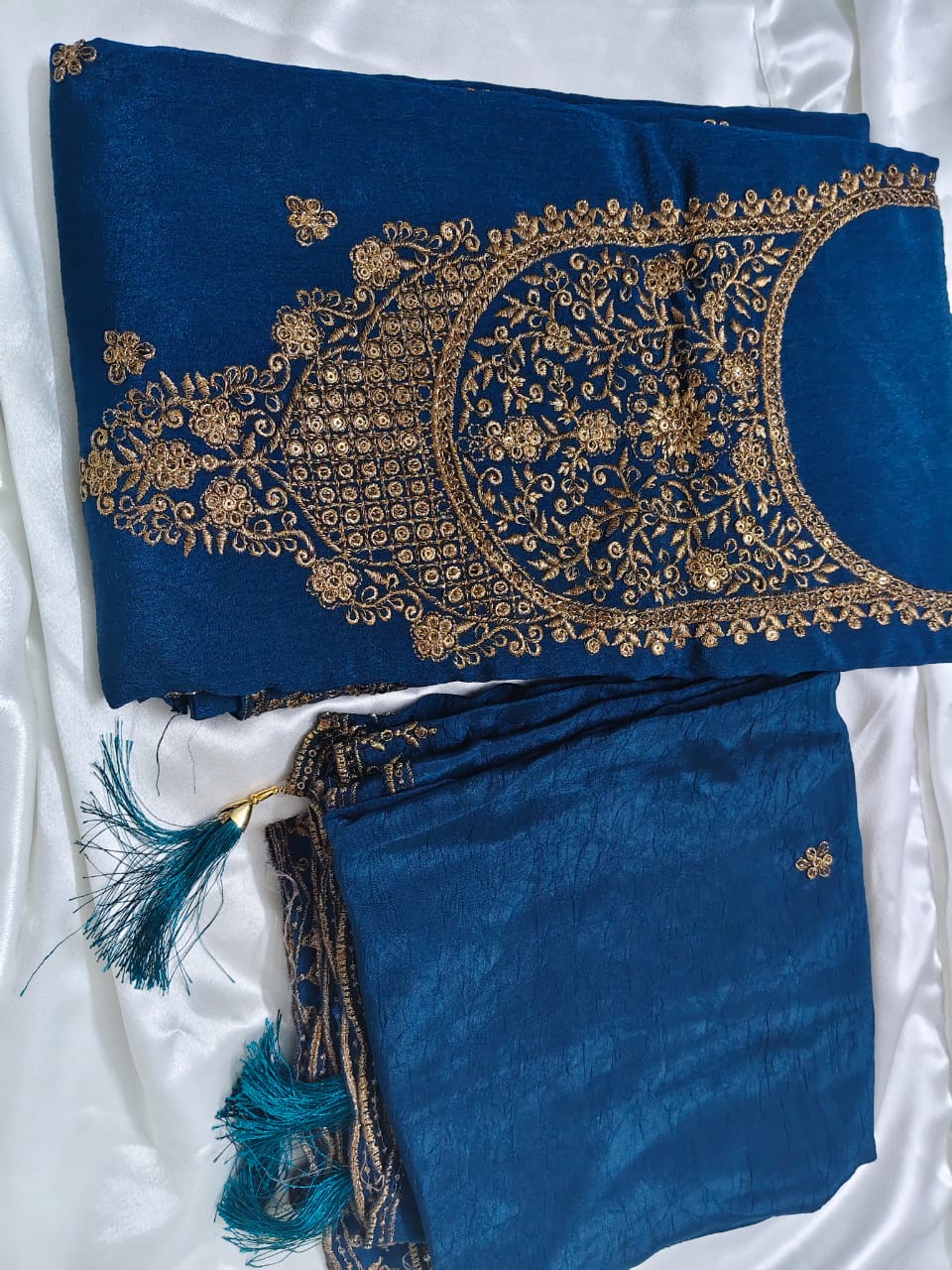 Dupatta – crush Georgette fabric with golden embroidery and sequin work and tassels
