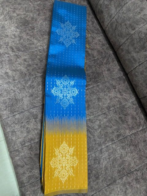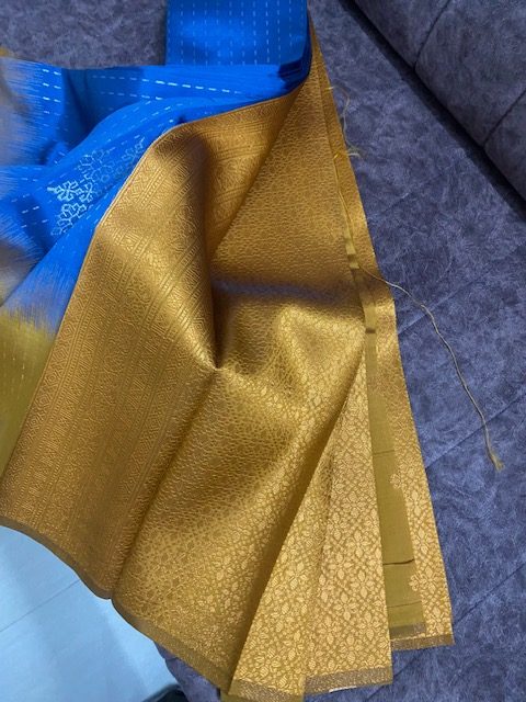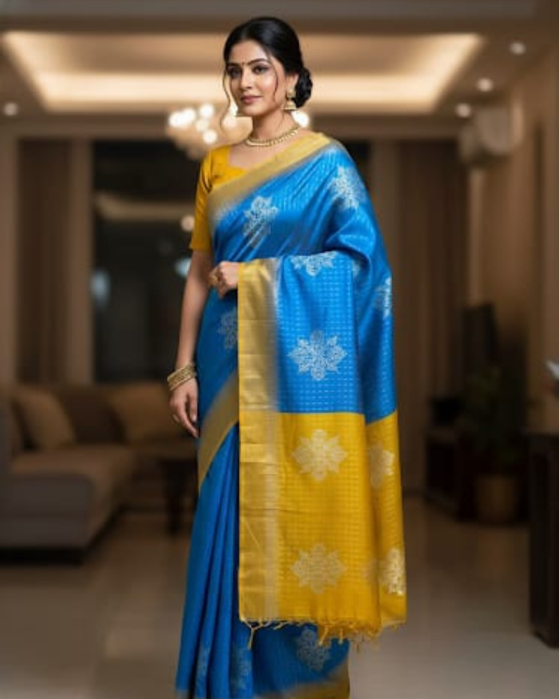 Blue Semi-Silk Saree with Dark Yellow Pallu