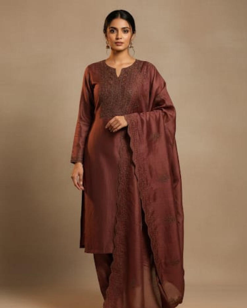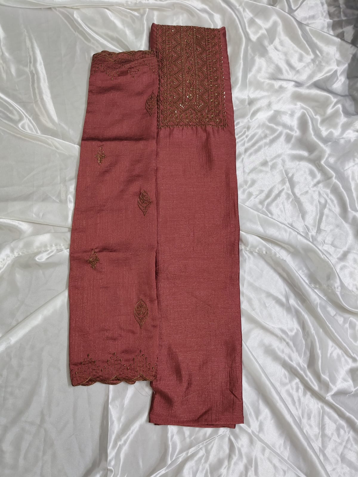 Duppatta – Vichitra silk, floral motifs all over and scalloped border with matching threadwork.
