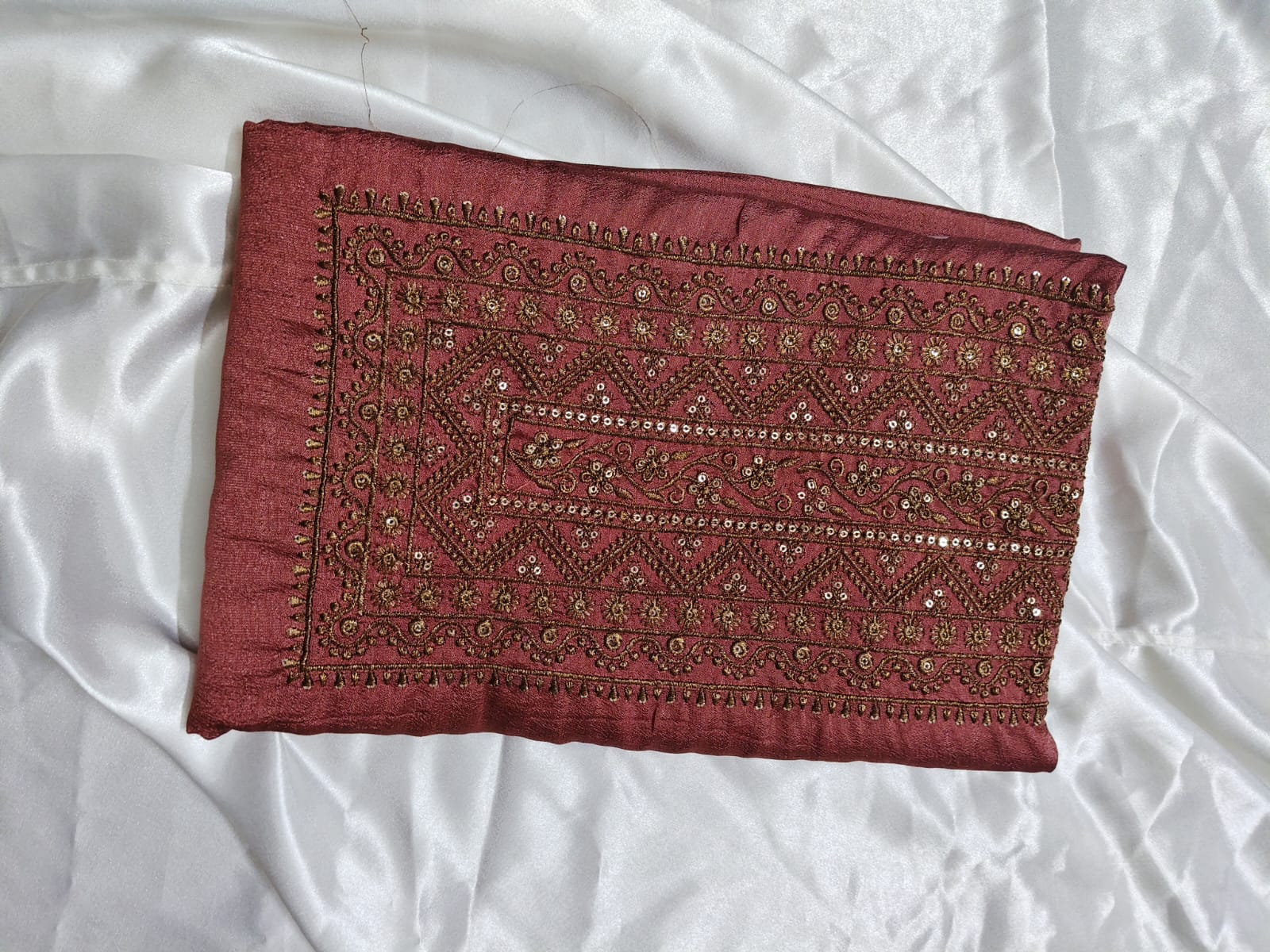 Top – Brown shade vichitra silk with heavily detailed yoke with intricate golden thread embroidery and sequin work and small